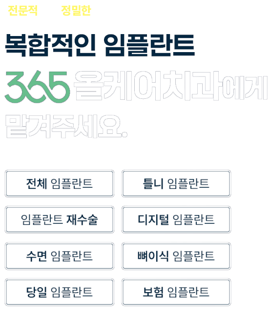 365올케어치과는 임플란트 수술에 대한 보증제도를 실시하고 있으며,